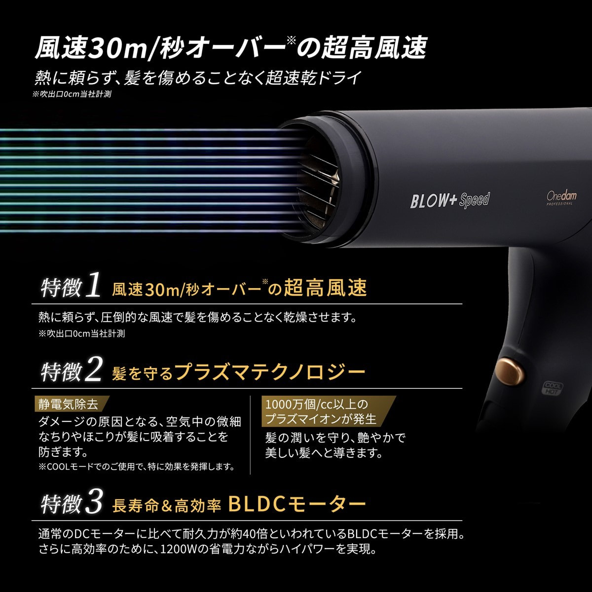 風速30m/秒オーバーの超速乾モードから、低風速のセットモードまで、最高レベルの実力を発揮します。